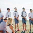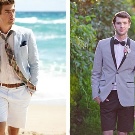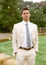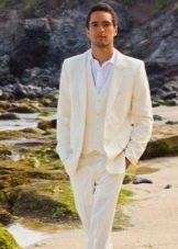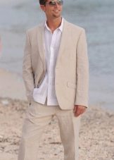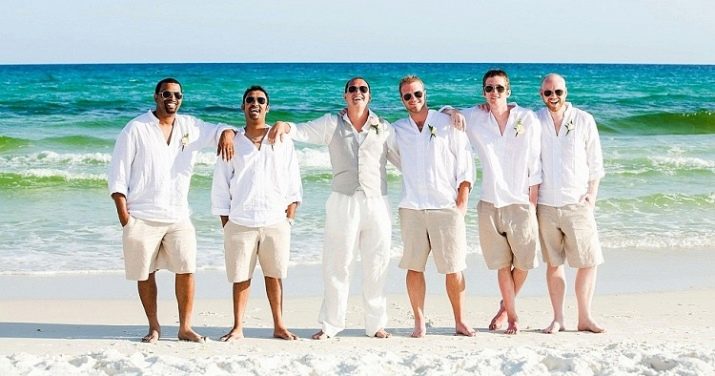 - Plážová svatba. V tomto případě se můžete obejít bez obleku. Lehké kalhoty vyrobené z tenkého plátna nebo klasických bílých šortek se ideálně hodí do zářivého obrazu oslavy u moře. Takové věci jsou často v šatníku mužů a pokud nejsou nalezeny, získají se. A pak už nečiní, protože takové oblečení je místo, kde se nosí v každodenním životě.