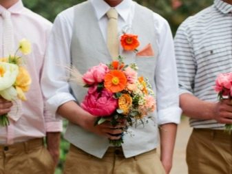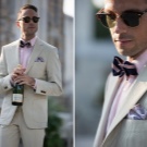 V letní sezóně má účast na svatební akci také nějaké konvence. V žáru je optimální se na svatbě objevovat v klasických kalhotách a prosté košili. Tkanina s nenápadným malým vzorem je povolena, je vhodné zvolit světlé barvy a odstíny. V létě nejsou krátké rukávy na košili považovány za porušení etikety. Můžete si vybrat barevnou kravatu pod košili. A pokud je rukáv dlouhý, umístěte akcenty s manžetovými knoflíčky, krkem nebo šátkem. Mohou být jasnější než košile a vytvořit opravdu slavnostní, letní vzhled v jedné „poznámce“ s událostí.