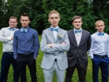 - Oblek musí být vybrán tak, aby nevypadal jako ženich. Aby se nedostal do nepříjemného postavení, je lepší se nejprve zeptat, jaký kostým má jeho hlavní viník na oslavu. A vyberte jinou možnost.