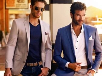 Styl horní části obleku, připevněný k postavě, je přípustný pro tenké, fit muže nebo texturou kluky s rozvinutým reliéfem. Přizpůsobené modely příznivě zdůrazňují vkus a styl člověka, ale pro plné lidi je lepší je odmítnout ve prospěch prostornějších šatů.
