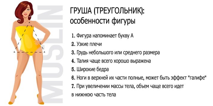 Pokud studujete názory sebe dívek s postavou „hrušky“, pak většina z nich je stále spokojená se svým tělem. Samozřejmě se musíte držet zdravé výživy a cvičení, například mnozí dávají přednost plavání. Pokud jde o oblečení, některé dámy doporučují nosit šaty s vysokým pasem, ale ne pod hrudník, ale těsně nad pásem, dlouhé halenky, vesty, bundy.