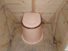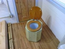 - Přítomnost jednotky nebo žumpy. Pokud žádné neexistují a nebude možné je stavět (například z důvodu vysokých nákladů nebo vysoké hladiny podzemní vody), stačí si koupit toaletní kbelík se dnem nebo suchým šatníkem, rašelinová varianta s prázdnou nádrží.