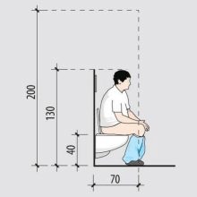 Čistá plocha začíná na 35 cm, v jiném případě se budete cítit omezeni. Velmi důležitou roli hraje šířka a výška záchodu. Vyberte si druhou možnost tak, aby si vaše nohy při sednutí těžce nesedly na podlaze. Žaludek by měl být v uvolněném stavu. Chcete-li koupit toaletu ve velikosti, nebojte se sedět na ní přímo v obchodě. Pak budete určitě cítit svou velikost.