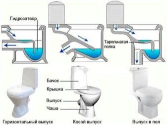 Na WC je trubka. Skrze něj se připojuje k kanalizaci. Trubky jsou následujících typů: rovný (horizontální), šikmý, vertikální (k dispozici je také uvolnění na podlahu). Každé vodovodní zařízení má svou vlastní konfiguraci. Dělí se podle vzhledu misek. Jsou trychtýřovitý, miskovitý, jako hledí. Splachovací nádrž téměř ve všech toaletách pracuje podle jednoho principu a sestává z držadla nebo tlačítka pro vypouštění vody, uzavíracího ventilu, plováku a ponoru pro přepadovou trubku.