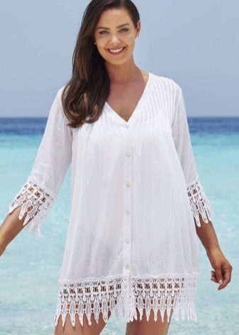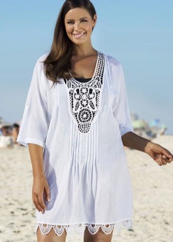 Plážové tuniky mohou mít různou délku - od velmi krátkých, sotva zakrývajících boky, po dlouhé, až po podlahu. První možnost je vhodná pro plné, vysoké krásy, které se mohou chlubit hladkými konstrukčními nohami.