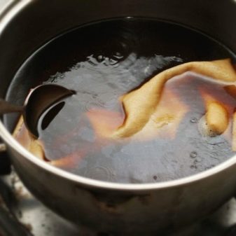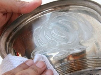 Na povrchu pánve se někdy objevují skvrny připomínající duhu. Můžete se jich zbavit pomocí octa, který musí být naředěn ve vodě. Půl sklenice teplé vody - lžíce octa. V této směsi byste měli houbu navlhčit a otřít povrch nádobí. Pokud v domě není žádný ocet, ale je tam kyselina citronová, lze ji také použít k čištění nádobí. Také přidejte lžíci na půl sklenice vody kyselina citronová, počkejte, až se úplně rozpustí a můžete začít čistit.
