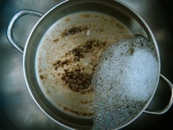 - soda popel a jednoduché prací mýdlo pomůže zbavit se vážného znečištění. Vše, co musíte udělat, je strouhat mýdlo, přidat pár lžiček takové sody, přidat vodu a vařit pánev půl hodiny.