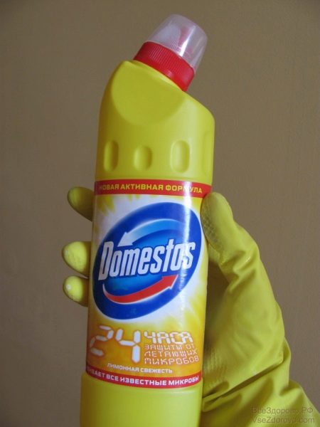 S tímto produktem se nemusíte umývat, pouze aplikujte látku houbou na mytí nádobí na místa, kde se údajně vyskytují houbové kolonie. Nezapomeňte na osobní ochranné pomůcky - rukavice a respirátory. Účinná látka se s tímto úkolem vypořádá do deseti minut. Pak je třeba odstranit zbytkovou látku a zahájit nečinné praní. Chcete-li výsledek opravit, nezapomeňte zapnout oplachování. Pamatujte si to jedlá soda je schopna rozpustit zbývající částice agresivního detergentu.