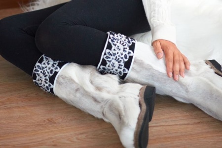 Přírodní vysoké boty lze ozdobit ornamenty, vzory, tisky a koženými řemínky s přezkami.