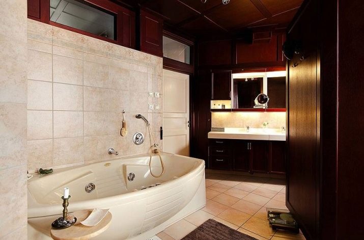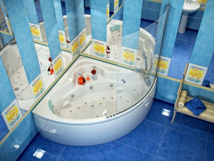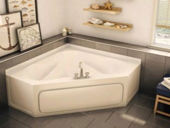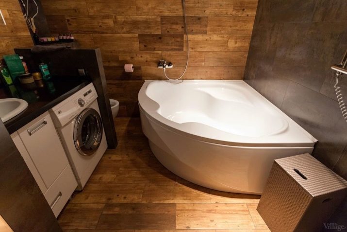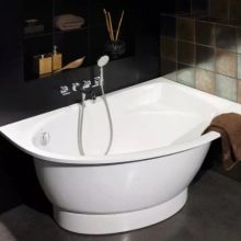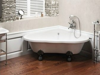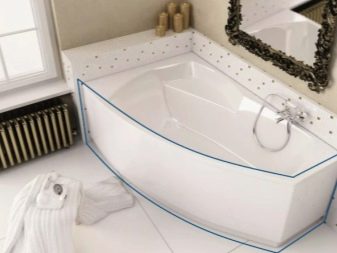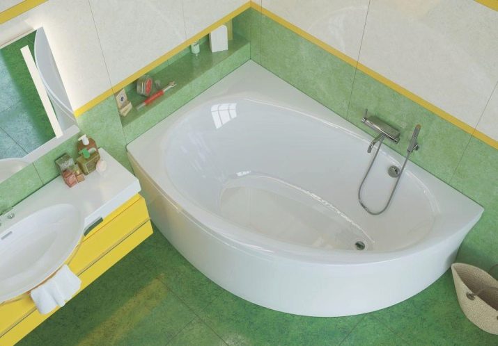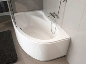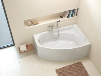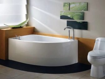 - Rohová vana - ideální pro instalaci v malých místnostech. To vám umožní efektivně distribuovat a plánovat každý centimetr volné místnosti a úspěšně umístit veškerý plánovaný nábytek a instalatérské práce do místnosti.