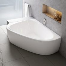 - Asymetrické. Tato skupina zahrnuje lichoběžníkové modely koupelí a fonty podle typu oříznutého oválu. Tyto modely se dělí na praváky a leváky. Hlavní výhodou je, že vám umožňují protahovat nohy a lze je použít k upevnění sprchových záclon.