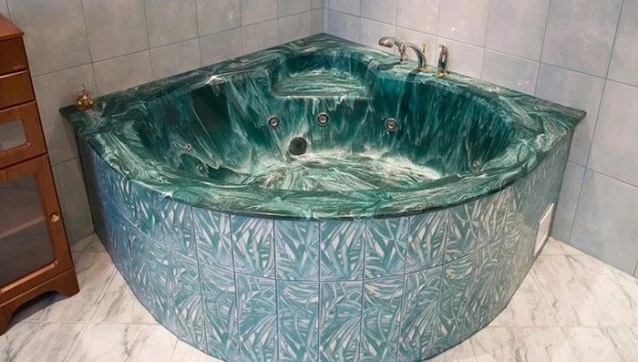 - Nestandardní formuláře. Obvykle se jedná o drahé modely rohových koupelí, které jsou instalovány tak, aby udržovaly určitý styl v místnosti. Navíc se tato písma obvykle vyrábějí na zakázku podle zvláštních preferencí klienta. Z nestandardních formulářů, které se na trhu vyskytují nejčastěji, můžeme rozlišit možnosti okvětních lístků a zkrácené modely ve tvaru kapky.