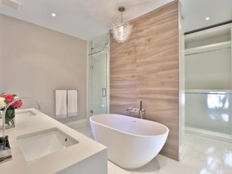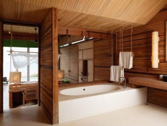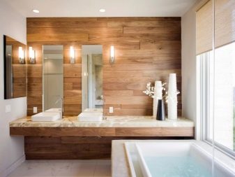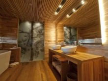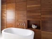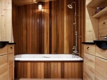 Znalci klasických interiérů pravděpodobně spí a uvidí svou koupelnu, zakončenou dřevem, zejména proto, že i v lázních je tato možnost obložení široce nalezena a nezpůsobuje žádné zvláštní stížnosti.
