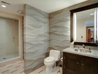 Sprej a vodní pára ve vzduchu jsou hlavními destruktivními faktory v koupelně, které by dekorace, které si zvolí místo dlaždic, měla být schopna odolat. Navíc, pokud se instalace provádí na přídavném rámu, pak musí odpovídat úrovni odolnosti vůči vlhkosti nebo musí být spolehlivě chráněna.