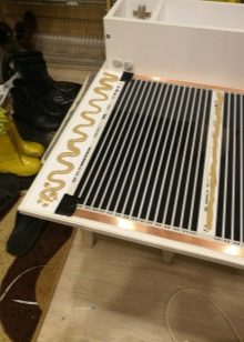 - Použití infračerveného filmu. Rozdíl spočívá pouze v principu jednání. Zde topné články vyzařují infračervené paprsky. Takové zahřívání je docela efektivní, ale při otevřené instalaci je také považováno za nebezpečné.
