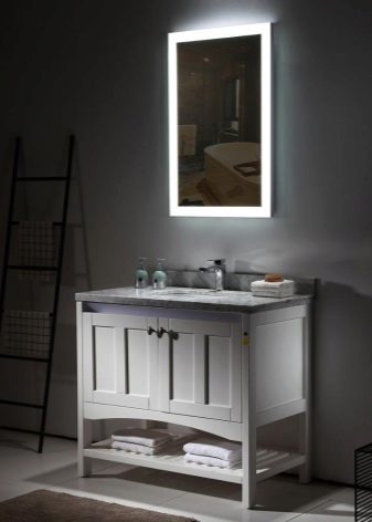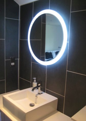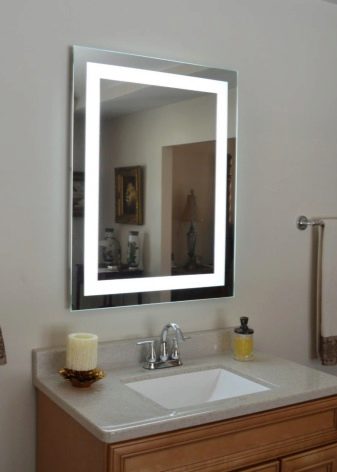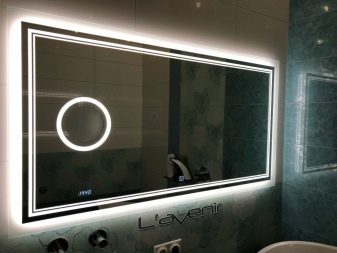 Kromě toho může být podsvícení dekorativní nebo čelní. V prvním případě je světlo směrováno ke zdi. Na zrcadle je vidět krásný světelný vzor, ale nepřidává osvětlení. Ve druhém případě je světelný tok směřován ven (na tvář pozorovatele). Zde tento prvek plní praktickou funkci - umožňuje lépe zvážit i ty nejmenší detaily, které jsou nezbytné například při použití make-upu.