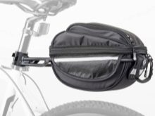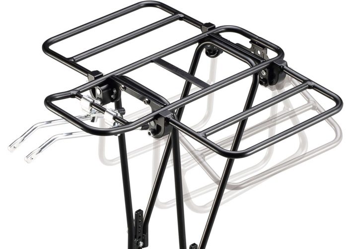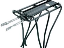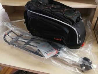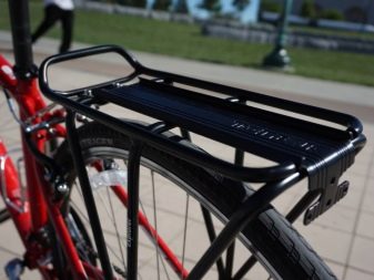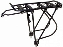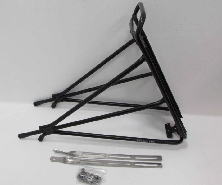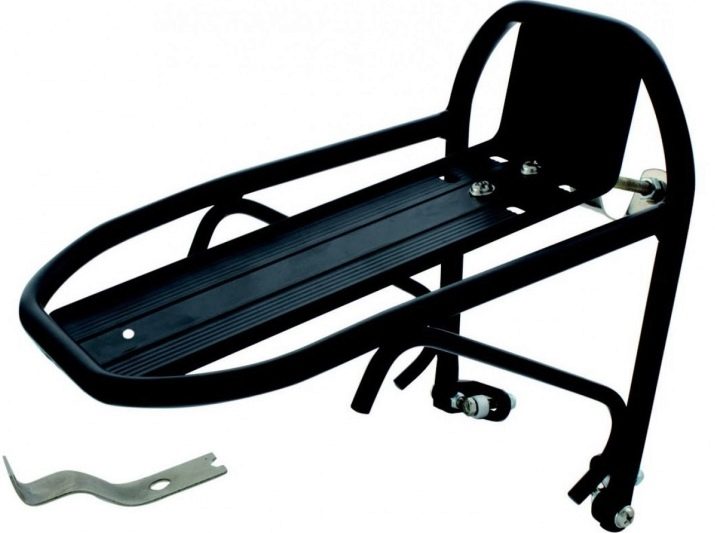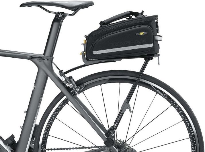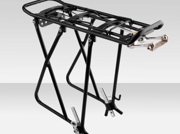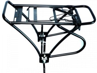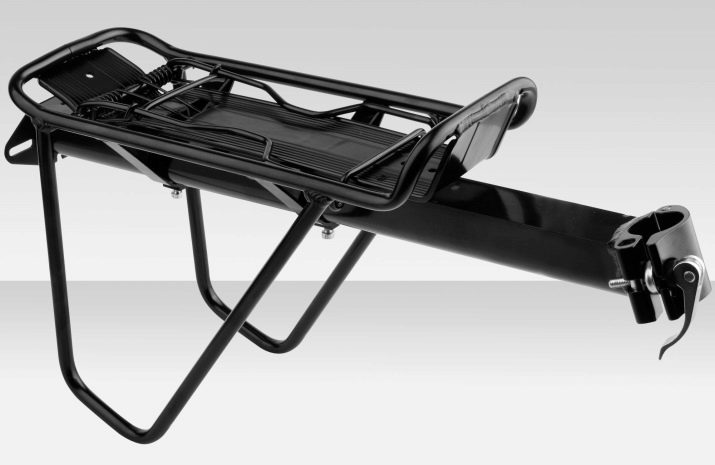- Konzole nebo kufr s rychlým uvolňováním. Nejjednodušší pohled na instalaci, protože je namontován pouze v jednom bodě (na sedlovce) a nemá další podpůrné body. Není vhodný pro přepravu těžkých břemen, nemá ochranný čep, který zabraňuje pádu obsahu do paprsků kol. Nejčastěji se takové nosiče zavazadel používají pro procházky městem nebo pro krátkodobé turistické výlety. Kotoučové brzdění komplikuje instalaci konstrukce na kole.