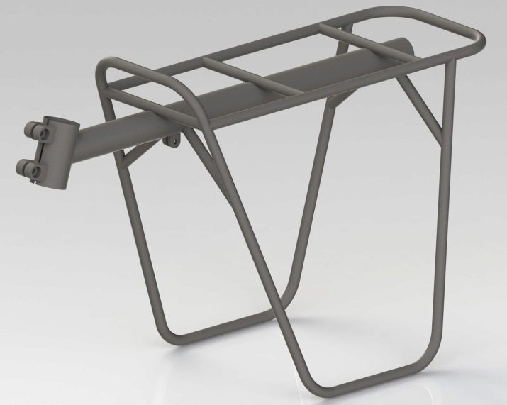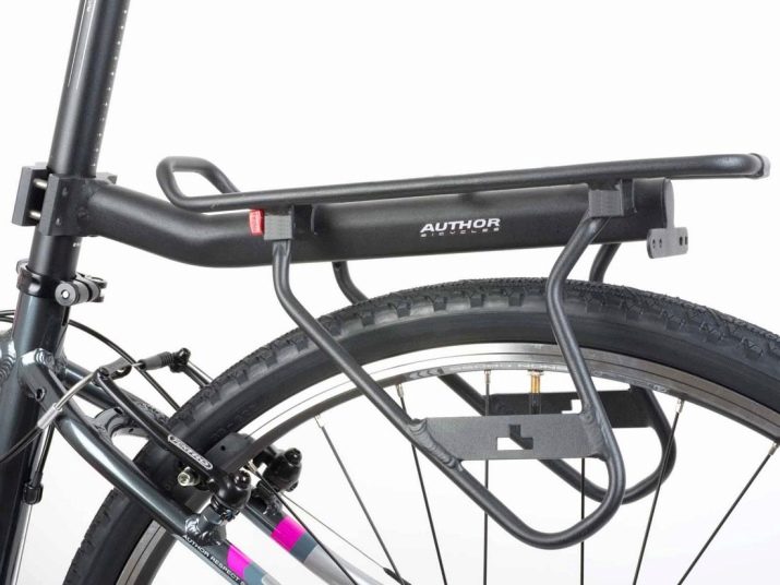 - Klasický nebo zadní kufr. Jedná se o univerzální, nejběžnější, nejspolehlivější a levný typ nosiče kol. K upevnění se používají malé šrouby, které připevňují zařízení k zadní trubce rámu ak peřím zadního trojúhelníku rámu. Vyznačuje se vysokou stabilizací během pohybu, která vám umožňuje volně přepravovat věci a nebojí se, že spadnou do jedné ze stran. Je to skvělé pro dlouhý výlet v kombinaci s přední nebo jednoduchou instalací dětské sedačky, pro upevnění speciálního batohu (kalhotové kalhoty). Lze je svařovat a skládat. První z nich je rámová struktura a má velkou pevnost a spolehlivost.