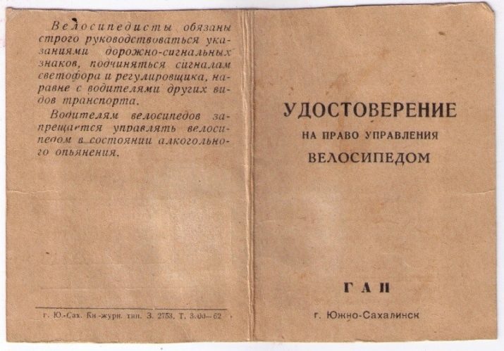 V Rusku existují zkušenosti s vydáváním dokladů, které opravňují řídit kolo. Ve 30. letech minulého století museli všichni cyklisté podstoupit povinnou registraci vozidla. Poté mu bylo přiděleno číslo a majiteli bylo vydáno osvědčení, které obsahovalo: