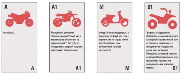- Moped, skútr, elektrické kolo - jedná se o mechanická vozidla s benzínovým motorem do 50 metrů krychlových. viz nebo elektrický generátor, jehož výkon je v rozsahu 0,25 až 4 kW. Povolená rychlost je až 50 km / h.