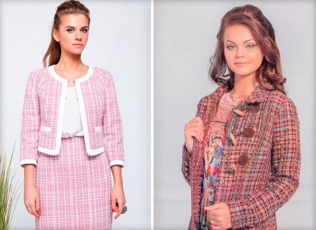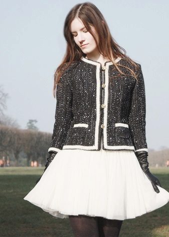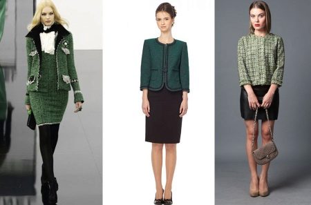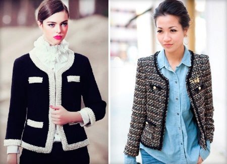 Pletené bundy ve stylu Chanel vypadají stejně elegantně jako tvídové. Je to proto, že tvídová vlákna jsou podobná vlněným vláknům. Výrobky jsou perfektní. Dokonale se hodí, a to je hlavní věc v bundě Chanel.