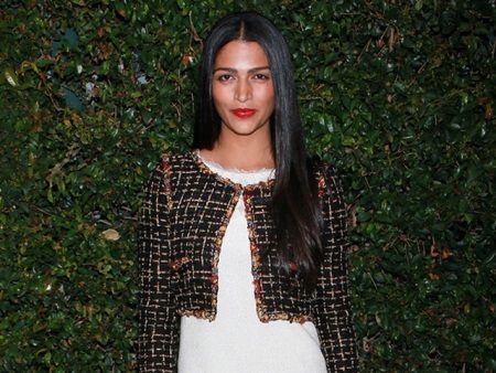 Lehká bunda s geometrickým lemováním a vysokými podpatky vytváří elegantní luk na Cameron Sharp. Jako příslušenství si vybrala zlatý náramek.