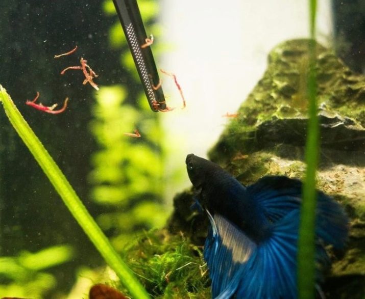 - Tør mad. Denne madindstilling er også et must. Det repræsenteres af udformede blodorme og artæmi. Cockerels kan virkelig godt lide denne slags mad.
