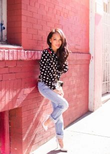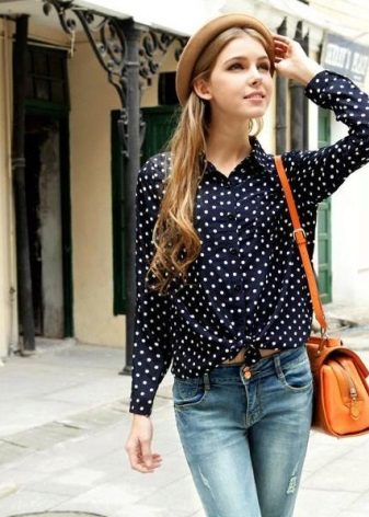 Polka dot-bluser findes i hver sæson, fordi dette tryk aldrig udløber. Polka prikker på bluser giver dem variation, giver en positiv stemning, giver et billede af legesygdom.