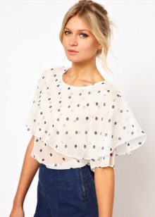 For at skabe et romantisk look er en lille ærterbluse af chiffon ideel.Designere tilbyder årets sommermodeller. De kan sikkert kombineres med nederdele i gulvet i tynd denim. Når du vælger sko, kan du foretrække til modeller med flade såler. En ærblouse kan også kombineres med lette jeans, bukser eller shorts.
