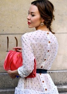 Polka prikker kan ikke kun være som tryk på stoffet. men også som dekoration. Sådan tøj ser kreativ og stilfuld ud, så du kan vise din personlighed.