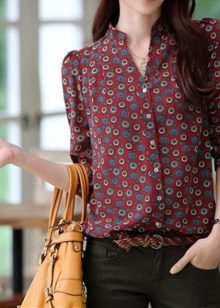 Halsudskæringen kan også være anderledes.Ofte er der bluser med en V-hals, fordi de perfekt understreger den smukke hals, tiltrækker opmærksomhed på brystet.