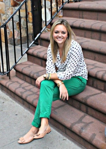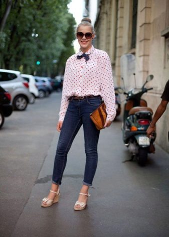 Den bedste løsning, når du kombinerer tøj med en polka dot-bluse, er valget af almindelige ting.
