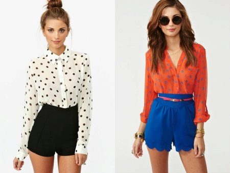 Designere tilbyder en bred vifte af polka dot-bluser. De er repræsenteret af forskellige stilarter, modeller, farveskemaer, længde, udskæring osv.