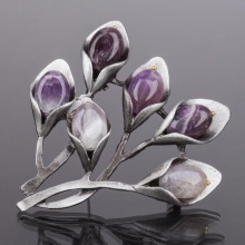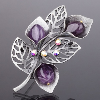 Ametyst betragtes som den dyreste type kvarts. Lilla-violet, i en guldramme, vil den skille sig godt ud på tøj med sin mystiske flimring.