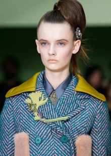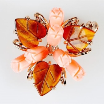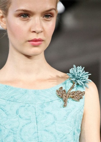 En broche med natursten er et kronet tilbehør, som ikke tåler konkurrenter, så andre smykker i dette billede vil være upassende. Ja, og tøj "med ham" er bedre at bruge almindeligt. Broschen ser elegant ud, fastgjort til jakkesæt eller frakke, men proportioner skal respekteres. Hun ser stilfuldt på bæltet på en kjole eller frakke, på kraven i en bluse, tilføjer charme til hendes pung, tørklæde, hat, frisure.
