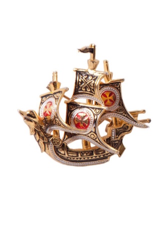 Broschen i form af en sejlbåd med rav- eller rubinsejl ser elegant og romantisk ud, hvilket vil inspirere håbet til unge piger i hjertet, og for ældre damer får en sød følelse af nostalgi.