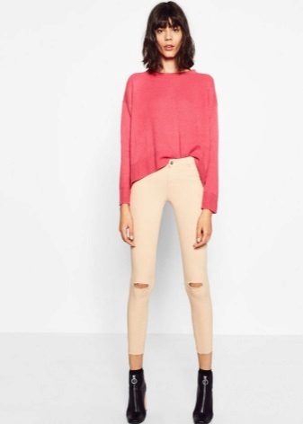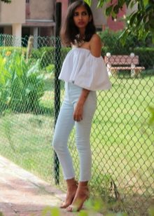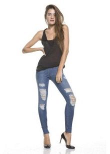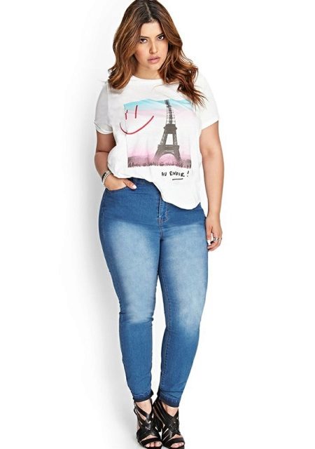 Damer i storslåede former skal have jeggings komplet med en rummelig og lang top og ikke med tynde strikkede bluser i tæt montering - sidstnævnte mulighed vil henlede unødvendig opmærksomhed på figurens ufuldkommenheder.