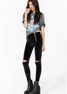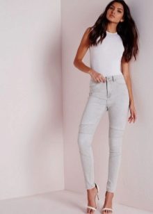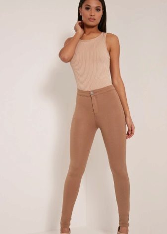 Jeggings med høj talje vil blive et ægte fund for kvinder, der er på ethvert trin af graviditeten - modeller til forventningsfulde mødre er udstyret med en strikket indsats til maven, og et elastisk bælte, der ikke klemmer, men pålideligt fastgør toppen af produktet, gør dette tøj så behageligt og sikkert som muligt.