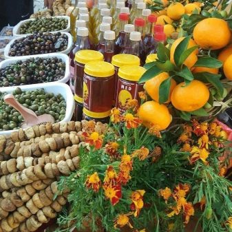 På Middelhavsmarkederne kan du altid købe saftige og modne frugter og grøntsager samt bær, nødder og tørret frugt. Det sælger friskmalet krydderier og krydderier, der giver en speciel smag til retterne.