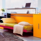 En sammenfoldelig sovesofa er en fremragende løsning til at arrangere en teenagers værelse. På den ene side kan sådanne kompakte møbler let omdannes til et soveplads, og på den anden side er der altid muligheden for at udstyre en zone til afslapning på dagen eller modtagelse af gæster.
