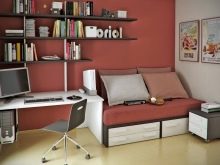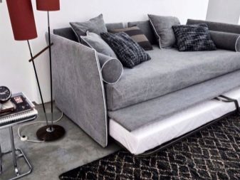 - Det er bedre at foretrække en multifunktionel model, især hvis optagelserne i rummet ikke er for store. Ideelt set skal sovepladsen være egnet til afslapning om dagen, modtagelse af gæster og opbevaring af ting.