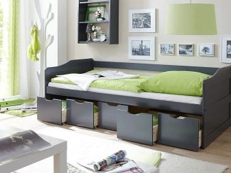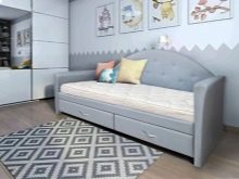 En sovesofa til en teenager kan være enkelt og ligner en almindelig seng med dens udseende, men med yderligere vægge placeret på tre sider. Ofte er dette design udstyret med en skuffe, der bruges til opbevaring af sengetøj.