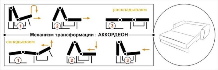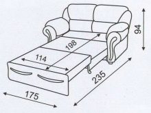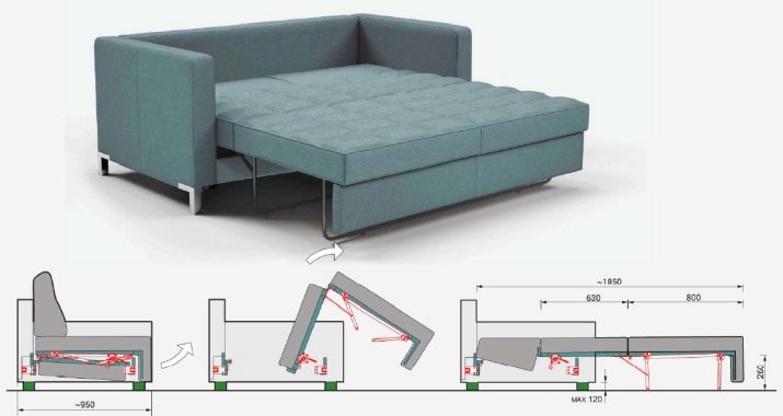 - model "Harmonika" det er lagt ud i forlængelse, og køjen er dannet af sædet og to bagerste sektioner. Sovesofens bredde varierer fra 120 til 195 centimeter.