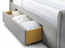 I bunden er rummelige skuffer, der kan bruges til at opbevare sengetøj. På trods af at sofaen har en rolig neutral farve, anbringes de nødvendige farve accenter ved hjælp af dekorative puder.