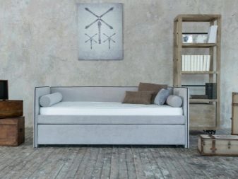 For et kreativt barn kan du vælge en sovesofa loft stil med almindeligt tekstilbeklædning i gråt eller brunt. Endelig, i en ivrig gamer, vil stilen være passende hi-tech. Sofaen skal have skinnende metaldetaljer, og polstret skal udføres i gråt eller marineblå.