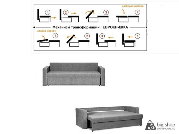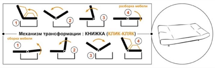 - Eurobook-model er den mest kompakte, da den er placeret tæt på væggen. Selv et barn er i stand til at håndtere en simpel foldemekanisme, og et stort antal farver og polstermaterialer giver dig mulighed for at vælge et valg for enhver smag. Modeller fås med eller uden armlæn.