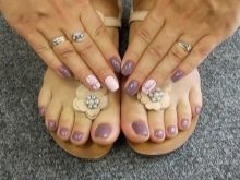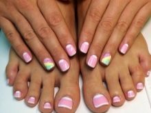 En gradient på negle ved hjælp af lyse nuancer betragtes også som meget populær. Dette design kan med fordel dekoreres med en lille spredning af paljetter på flere negle. Fotodesign ser godt ud både på hænder og fødder, fordi du med sin hjælp kan genskabe enhver tegning uden at bruge meget tid på at tegne.