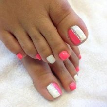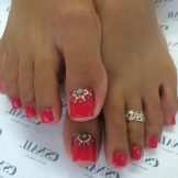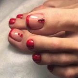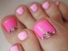 Overvej typen af sko. Hvis det er lukket, giver det ingen mening at klæde dine negle med omfangsrige elementer, fordi de fra konstant kontakt med sko meget hurtigt falder ned fra basen. Begyndere vil ikke lykkes med at korrigere denne nuance diskret.I betragtning af at det tager meget tid for en pedikyr, er det bedre at tænke over designet på forhånd.