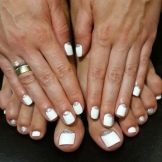 Alle disse toner kombineres godt med hvidt. Hvid farve er grundlaget for mange farvekombinationer; det giver let design af pedikyren. For eksempel kan det kombineres med sådanne farveskemaer som: