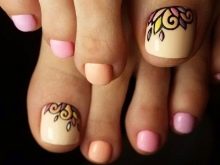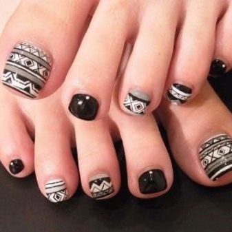 - Populære etniske motiver i pedikyrdesign. I dette tilfælde kan du ikke overdrive det med billederne. Der skal ikke være mere end to på det ene ben.